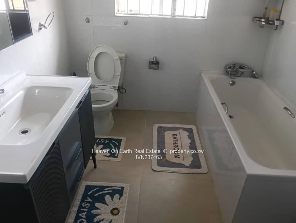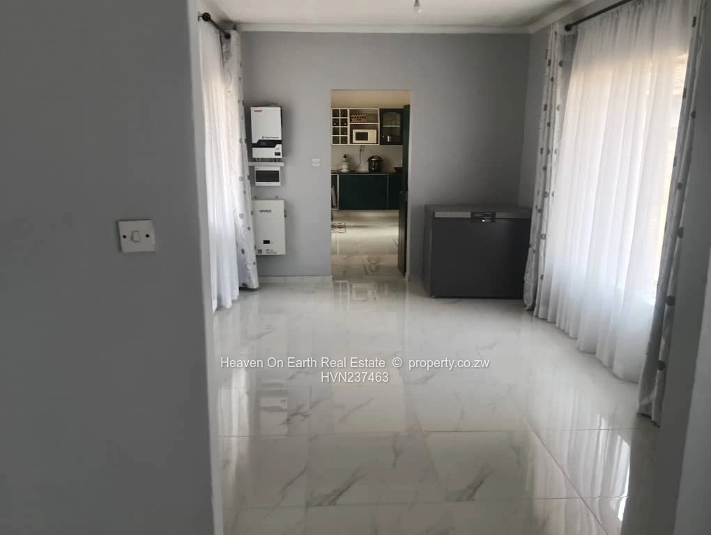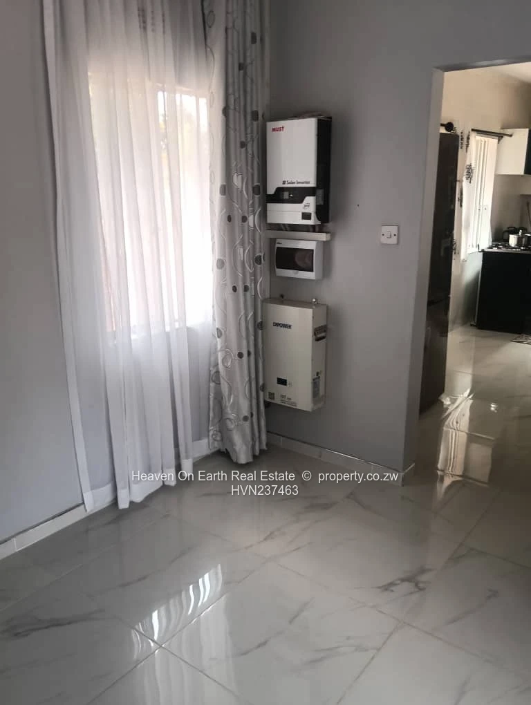Hillside fully furnished 3 bedroomed house main ensuite, bathroom with shower toilet and wash basin, 2 lounges, dining room, fitted kitchen. Borehole water and 5kva solar back up. Property is sitting on 2000sqm. Available 1st of a February at $1800 fully furnished and $1500 non furnished.