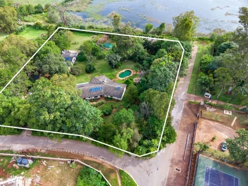 The main house has 3 bedrooms, mes plus additional bathroom and toilet. It has 3 massive lounges, a dining room and a large and well fitted kitchen with all necessary kitchen fittings. Additional the house has a guest wing with 2 bedrooms both ensuite and a lounge plus a gym/study. There is adequate staff accommodation and garages.
